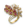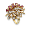 Anello vintage in oro giallo 18kt impreziosito da diamanti e rubini.