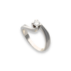 L'anello solitario modello Valentino è un grande classico che, con la sua particolare linea in movimento a contrariè, dà slancio alla pietra mettendola in evidenza da ogni angolazione.