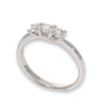 Un anello trilogy in oro bianco con diamanti è un gioiello elegante e simbolico, spesso scelto come anello di fidanzamento o regalo importante caratterizzato da tre pietre principali disposte in sequenza sulla fascia.