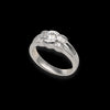 Anello a fascia in oro bianco 18kt impreziosito da fiocco realizzato con un diamante centrale taglio rotondo fiancheggiato da diamanti taglio baguette