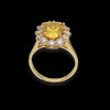 Anello in oro giallo 18kt dalla classica montatura a fiore impreziosita da petali di pietre sintetiche bianche e fulcro di vetro giallo.