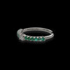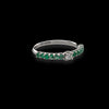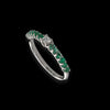 La montatura ad U con il suo effetto rialzato consente di esaltare la brillantezza degli smeraldi posti ai lati dell'unico diamante bianco centrale incastonato in 4 griffe.