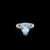 Anello realizzato in oro bianco 18kt con goccia di topazio celeste centrale incastonata in 6 griffe ed impreziosito ai lati del gambo da diamanti bianchi huit huit.