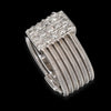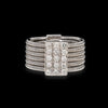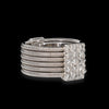 Anello dal design moderno realizzato in oro bianco 18kt con rettangolo centrale impreziosito da 3 file da 5 diamanti bianchi ciascuna.