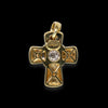 Croce dal design dalle linee arrotondate in oro giallo 18kt con quadrato centrale in oro bianco impreziosito da pavè di diamanti
