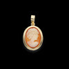 Ciondolo ovale in oro giallo 18kt con cammeo raffigurante il volto laterale di una dama