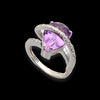 Anello in oro bianco 18kt impreziosito da una goccia di ametista abbracciata da un filo di diamanti bianchi