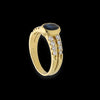 Anello realizzato in oro giallo 18kt impreziosito da due fasce di diamanti bianchi e zaffiro taglio ovale centrale.
