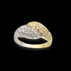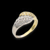 Anello contrarier con due teste di serpenti realizzate in oro bianco e giallo 18kt ed entrambe tempestate di zirconi