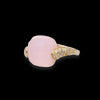 Anello in oro rosa 18kt impreziosito da un quarzo rosa centrale taglio cabochon e zirconi incastonati su un solo lato del gambo