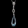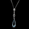 Elegante catena in oro bianco 18kt maglia veneziana con pendente di diamanti e goccia di topazio azzurro.