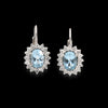 Elegantissimi e raffinati orecchini in oro bianco 18kt, impreziositi da acquamarina taglio ovale incastonata in 4 griffe e circondata da una corona di diamanti bianchi naturali.