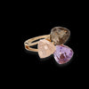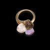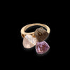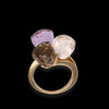 Gocce di quarzi rosa viola e fumè su una montatura semplice e lineare realizzata in oro rosa 18k rendono questo anello Comete un capolavoro da indossare per occasioni uniche e indimenticabili.