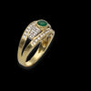 Anello anni '90 realizzato interamente in oro giallo 18kt ed impreziosito da un occhio dì smeraldo taglio ovale fiancheggiato da 3 rettangoli di diamanti per lato e due fasce sempre di diamanti poste sopra e sotto.