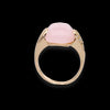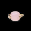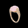 Anello in oro rosa 18kt impreziosito da un quarzo rosa centrale taglio cabochon e zirconi incastonati su un solo lato del gambo