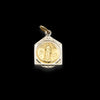 Medaglia pentagonale realizzata in oro bianco e giallo 18kt con immagine sacra della Madonna