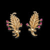 Orecchini vintage in oro giallo 18kt con lavorazione satinata, raffiguranti una meravigliosa foglia con bacche di rubini laterali.