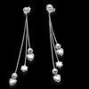 Orecchini in oro bianco 18kt con tre fili pendenti impreziositi da cuori e fiori.