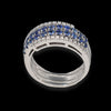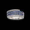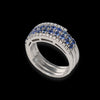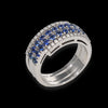 Anello in oro bianco 18 kt impreziosito da 4 fasce di pietre naturali, due di zaffiri centrali e due di diamanti alle estremità.