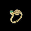 Anello in oro giallo 18kt con smeraldo ovale incastonato in un filo di oro e una staffa di cavallo tempestata di pavè di diamanti.