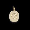 Ciondolo di avorio taglio quadrato dagli angoli arrotondati con fusa sopra la lettera C scritta in corsivo e realizzata in oro giallo