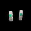 Orecchini in oro bianco 18kt a cerchi impreziositi sul frontale da tre file di diamanti brown e da uno smeraldo taglio quadrato centrale