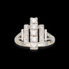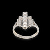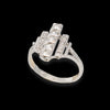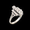 Anello dal design retròì, realizzato in oro bianco 18kt e impreziosito da tre fasce di diamanti.
