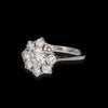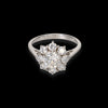 Anello fiore in oro bianco 18kt con diamante centrale incastonato in 8 griffe e circondato da 8 diamanti più piccoli incastonati in 4 griffe per una caratura totale di circa 1,20 ct.