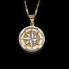 Catena maglia alternata dall'effetto diamantato realizzata in oro giallo 18kt con ciondolo rosa dei venti in oro giallo e bianco con rifinitura lucida e satinata.