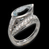 Anello in oro bianco 18kt a serpente con diamanti e acquamarina