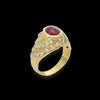 Anello in oro giallo 18kt con rubino centrale e diamanti