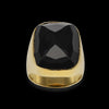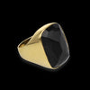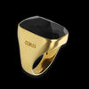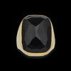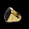 Realizzato in oro giallo 18 karati, l'anello presenta una testa a sezione rettangolare al centro della quale è incastonata una grande pietra onice naturale dal colore intenso.