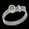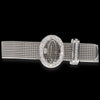 Bracciale Damiani in oro bianco 18kt maglia mesh regolabile con chiusura a fibbia tempestata di diamanti e Logo centrale realizzato in corsivo e incorniciato da un ovale di diamanti bianchi
