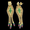 Orecchini SunDay con sfere satinate alternate a catena con rombo centrale di radici di smeraldi con tre catene pendenti che terminano con tre sfere colorate di radici di rubini zaffiri e smeraldi.