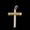 Ciondolo a croce in oro bianco e giallo con lavorazione intagliata che dona luce al gioiello