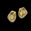 Orecchini da lobo a forma ovale irregolare realizzati in oro giallo 18kt con motivo ad incrocio in rilievo.