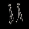 Orecchini pendenti realizzati in oro bianco con tre fili di sfere pendenti alternate al centro e alla fine da sfere sfaccettate più grandi