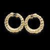 Orecchini a cerchio semiaperto che ricorda le corone d'alloro indossate dagli dei, realizzati in oro giallo 18kt piatti sul retro e a treccia sul frontale