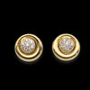 Orecchini a lobo a forma di cerchio realizzati in oro giallo 18kt ed impreziositi al centro da 7 zirconi bianchi disposti a forma di fiore ed incastonati in 4 griffe.