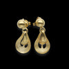 Orecchini in oro giallo 18kt con sfera all'altezza del lobo e conchiglia pendente a lavorazione satinata
