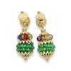 La parte pendente è formata da un cuscino traforato appoggiato su una coroncina di pietre dure colorate alla quale è agganciata una piccola bolla di pietre dure verdi, infilate a mano con maestria artigianale e trattenute da due coppiglie merlettate.