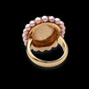 Anello in oro giallo con quarto rosa e perline